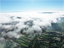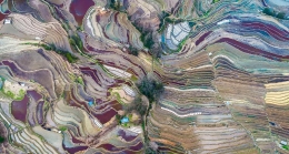 冬日,地处云南省红河哈尼族彝族自治州元阳县的世界文化遗产哈尼梯田蓄水充盈,在阳光的照射下色彩丰富,美不胜收。