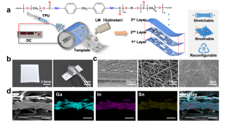 记者4日从中国科学技术大学获悉,该校信息学院赵刚课题组提出了一种结合纳米纤维静电纺丝和液态金属模板印刷的新型柔性电子器件制备技术。相关研究成果日前发表于最新一期国际期刊《ACS 纳米》上。