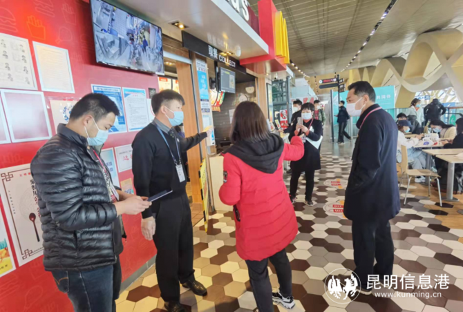 昆明信息港讯 记者俞逍 为全面贯彻落实省、市及滇中新区新型冠状病毒肺炎疫情防控工作部署要求,昆明市市场监管局空港分局对昆明长水国际机场这一人员密集的大型交通枢纽实施强有力的疫情防控措施,突出狠抓经营主体责任落实,做到检查全覆盖、隐患排查到位、整改见实效,切实为保障人民群众生命健康安全和“双节”消费秩序正常运行履职尽责。