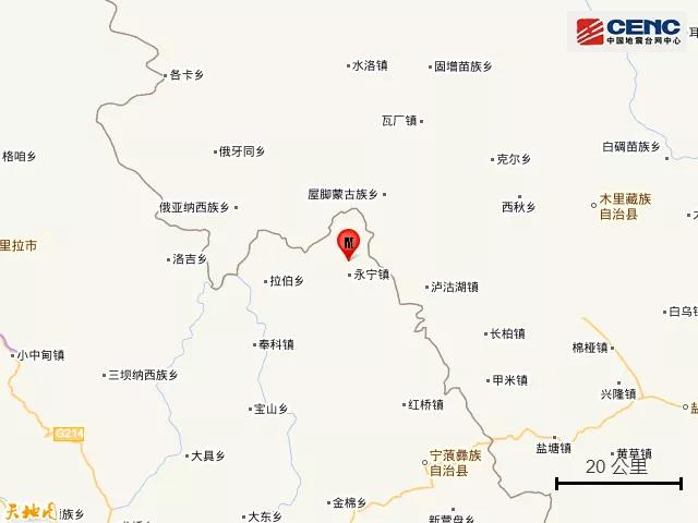 附近村镇:本次地震周边5公里内的村庄有阿米瓦、拉瓦、上瓦都、黑瓦罗、阿米罗、拉鲁瓦、火山、嘎尔村、永宁村、皮匠村,20公里内的乡镇有拉伯乡。