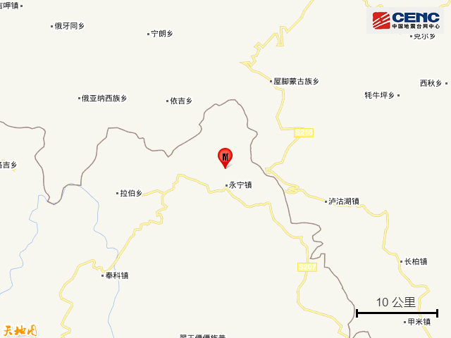 震中简介:宁蒗彝族自治县隶属于云南省丽江市,与四川省交界,地处滇西北横断山脉中段,绵绵山自北向南纵贯全境,沟壑交错,有泸沽湖等多个旅游景点。宁蒗气候湿润,垂直差异明显,矿产资源丰富。宁蒗彝族自治县面积6025平方公里,下辖1镇14乡,2014年人口28万,2014年全县GDP达31亿元。
