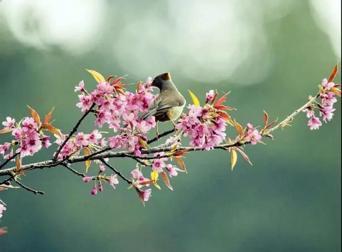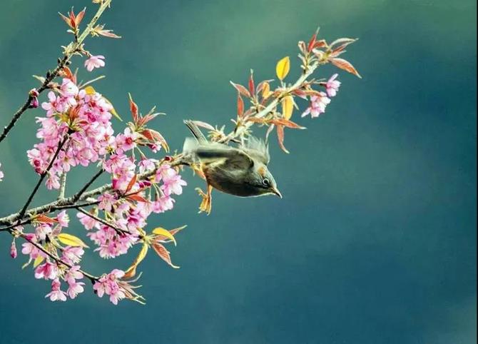 连日来,在普洱市景东彝族自治县景福镇,许多鸟儿在樱花枝头飞来飞去吸食花蜜,构成一幅和谐美好的画面。