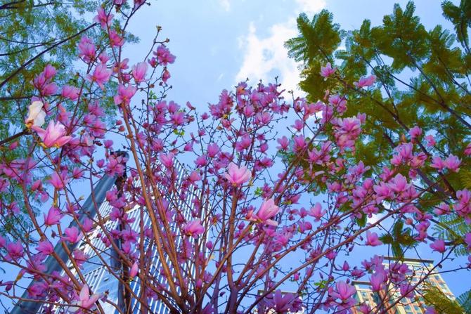 在红河哈尼族彝族自治州弥勒城区主要街道、城市出入口等,玉兰花、梅花、海棠花等各种鲜花花开正艳、分外妖娆。
