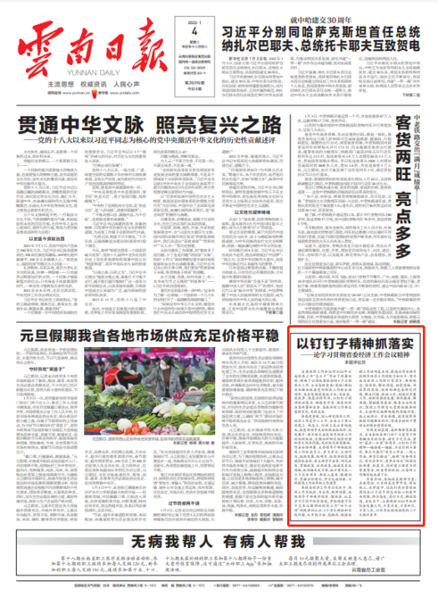 省委经济工作会议对2022年云南经济工作“怎么干”作出了部署安排,明确了必须统筹抓好的5个方面重点工作。全省各级党委(党组)要切实加强和改善党对经济工作的全面领导,充分发挥党委把方向、定政策、促改革、保落实的作用,以钉钉子精神抓好落实,确保党中央、国务院的决策部署和省委、省政府的工作要求落到实处、见到成效。