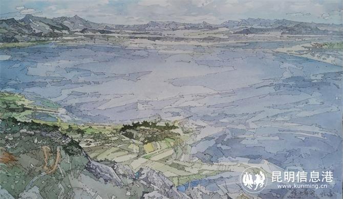 蒋凌《滇池草海》54cmX31.5cm 钢笔淡彩2020