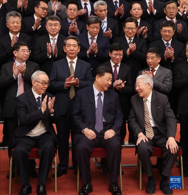 2021年2月22日,党和国家领导人习近平、李克强、栗战书、汪洋、王沪宁、赵乐际、韩正等在北京人民大会堂会见探月工程嫦娥五号任务参研参试人员代表并参观月球样品和探月工程成果展览。这是习近平会见探月工程嫦娥五号任务参研参试人员代表时,同孙家栋、栾恩杰等亲切交流。