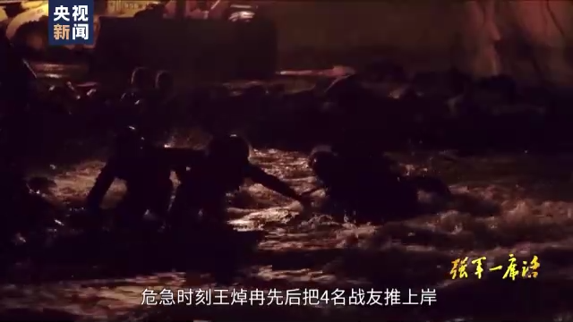 渡河途中,河水突然上涨,不断有战友滑倒,被冲向下游。危急时刻,王焯冉先后把4名战友推上岸,他的双腿却被河底的石头死死卡住,加上体力不支,被淹没在水中,献出了宝贵生命。
