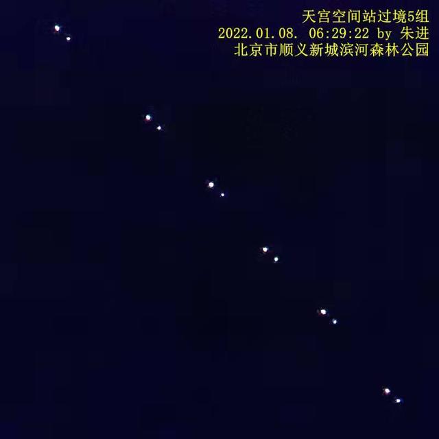 1月6日,中国空间站组合体过境北京上空。(朱进 摄)