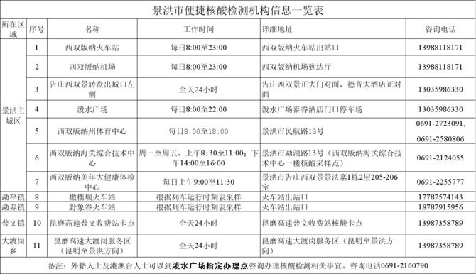 2、自勐海县、勐腊县进入景洪市辖区需持48小时核酸检测阴性证明。景洪市辖区范围内人员流动除边境严管区域外,无需提供核酸检测阴性证明。