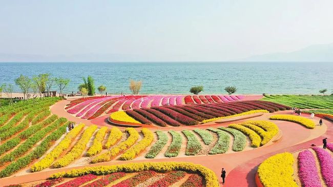 从高空俯瞰滇池,湖盆南北长东西窄,湖体北部海埂横亘东西,将湖体分为内外两部分,水光潋滟,“一线平分秋色”的美景尽收眼底。