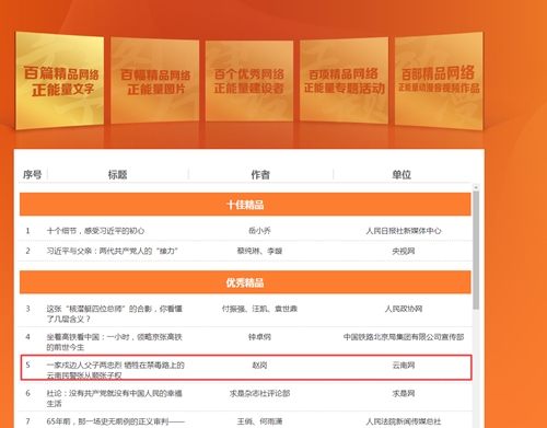 云南网作品《一家戍边人父子两忠烈 牺牲在禁毒路上的云南民警张从顺张子权》入选“百篇精品网络正能量文字”优秀精品。