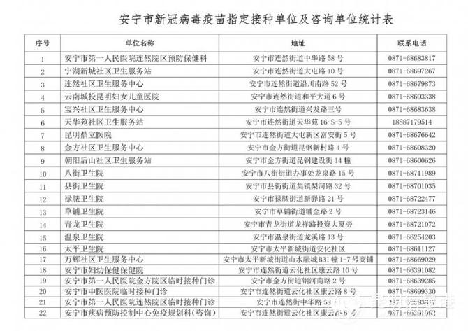 安宁市疫苗接种地点
