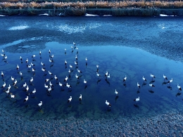 这是1月5日拍摄的哈尔滨冰灯艺术游园会园区的一角(无人机照片)。