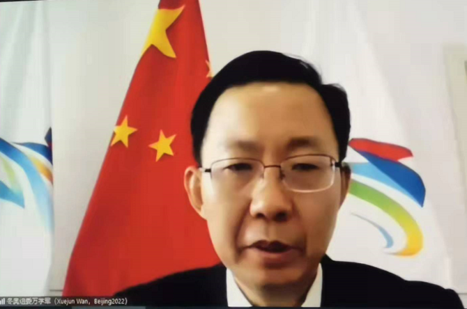 万学军副部长在致辞中表示,感谢中国驻印度使馆精心安排此次活动,感谢印度奥委会和青年领袖联合会对北京冬奥会的关注和支持。中国政府高度重视北京冬奥会、冬残奥会筹办工作。一周前,习近平主席再次莅临北京冬奥组委总部和部分场馆视察,展现中方成功办奥的信心与决心。万副部长从冬奥会场馆和基础设施、赛事运行和保障能力、赛会服务保障、应对新冠肺炎疫情及可持续奥运等五个方面介绍了冬奥会筹备工作,表示北京作为全球首座“双奥之城”,一定会给世界呈现一届“简约、安全、精彩”的奥运盛会。