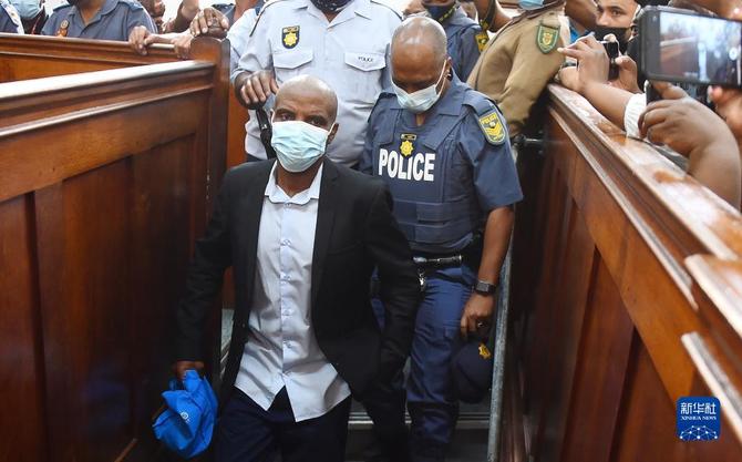 1月11日,南非议会纵火嫌疑人赞迪雷·马菲(前)在开普敦地方法院出庭后离开。新华社发(哈比索·姆卡贝拉摄)