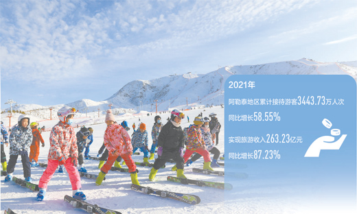 寒冬里,群众的工作生活非但没有减速,反而蒸蒸日上。近年来,阿勒泰地区积极发展冰雪相关特色产业,包括休闲体育、旅游观光、配套服饰等,带动群众就业增收。阿勒泰地区文化体育广播电视和旅游局发布的数据显示,2021年,阿勒泰地区累计接待游客3443.73万人次,同比增长58.55%;实现旅游收入263.23亿元,同比增长87.23%。