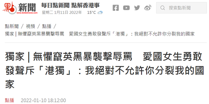 面对黑衣人辱骂,王小姐选择拿出手机,拍摄记录下现场,王小姐一边拍摄,一边理性回应黑衣人的挑衅和辱骂,“你要分裂我的国家,我凭什么不能和你争论!我的国家在中国,我永远都是中国人!你可以有你的观点,但是我绝对不允许你分裂我的国家!”令王小姐意外的是,对方情绪变得更为激动,更多人包围了她,并且拿出手机对准她进行拍摄,同时不断辱骂她和她的同事,中间一度发生轻微推搡。