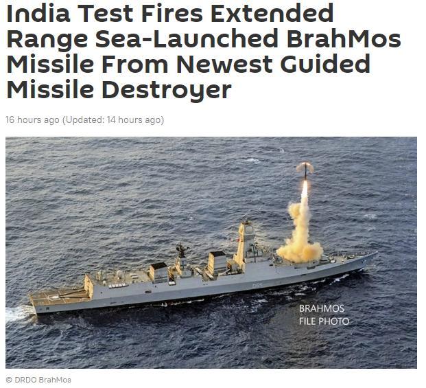 “从‘维萨卡帕特南’号上成功试射增程型‘布拉莫斯’超音速巡航导弹代表了双重成就。首先,它证明了该舰作战系统和武器装备的准确性。其次,它验证了‘布拉莫斯’导弹为海军和国家提供的新能力,”印度海军说。印度海军还称这次试射是印度的“历史性的一天”。