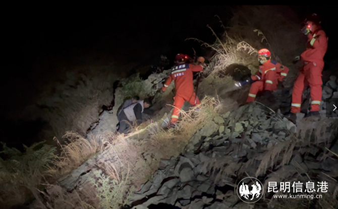 昆明信息港讯 记者劳学丽 1月11日19时36分,怒江傈僳族自治州泸水市鲁掌镇省道s327往东400米附近登埂温泉酒店旁悬崖上有2名测绘人员被困,情况危急。怒江州消防救援支队119指挥中心接到群众报警后,立即调派特勤站2车11人,泸水大队1车7人前往救援。支队全勤指挥部1车5人遂警出动。经过4个多小时紧张救援,成功将2名被困人员救出。
