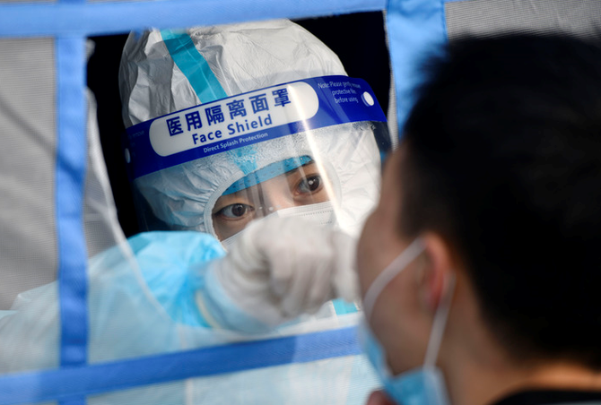 1月9日,在天津滨海高新区的一处核酸检测点,工作人员在为群众做核酸采样。新华社记者 赵子硕 摄