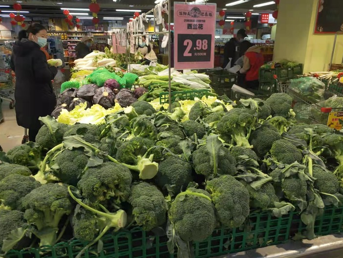 不只是封控区内,天津市商务局副局长李宏表示,为应对突发疫情,天津立即启动群众生活供给保障联动应急响应机制,发动大型批发市场、超市、菜市场等市场主体提前组织货源,加强备货。目前,天津市内农贸批发市场货源充足,肉蛋菜等供需保持基本平衡,蔬菜库存量由供应全市2天水平提高到3至4天,米面油存量由20天提高到30天。