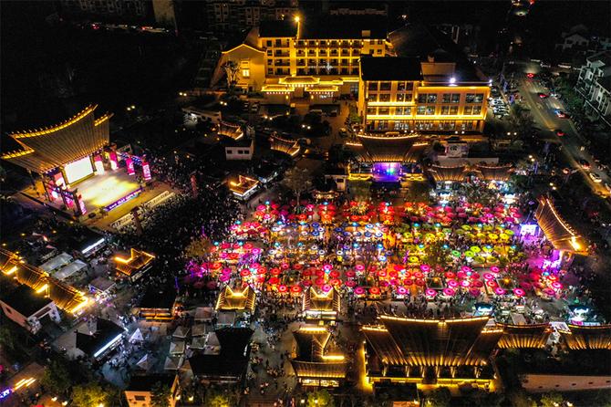 澄江市抚仙湖·广龙小镇星光夜市(2020年10月2日摄)。云南海诚实业集团股份有限公司 供图
