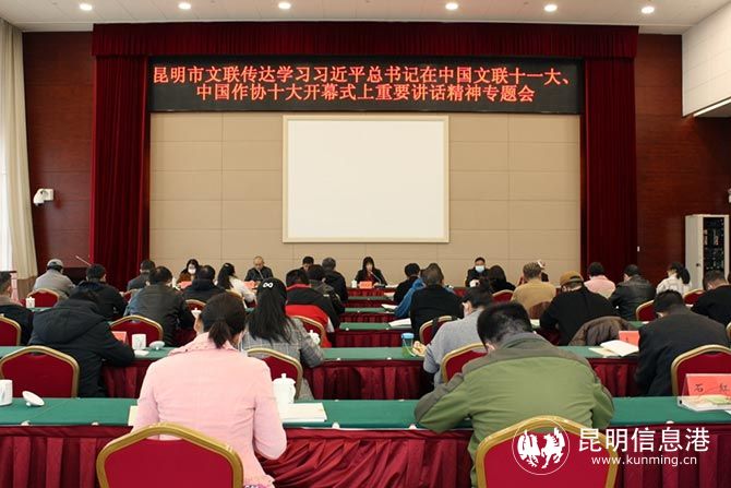 昆明信息港讯 记者孙红亮 王奕然 1月13日上午,市文联在昆明会堂召开专题会,学习传达习近平总书记在中国文联第十一次全国代表大会、中国作家协会第十次全国代表大会开幕式上的重要讲话精神,传达学习中国文联第十一次全国代表大会、中国作家协会第十次全国代表大会精神等。会议由昆明市文联党组成员、副主席、机关党总支书记王金龙主持。