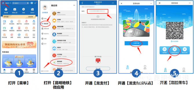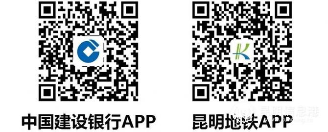 2021年8月20日起,乘客可以通过手机应用市场或扫描下方二维码下载“昆明地铁APP”或“中国建设银行APP”,开通昆明地铁“刷脸乘车”业务。