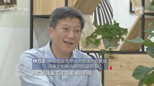 中国农业大学经济管理学院教授、国家乡村振兴研究院副院长 林万龙:地方有特色产业,你有可能在别人办的特色产业企业里面就业,你的就业工资性收入会增加,你自己经营这个特色产业,你的经营性收入会增加。所以无论如何,一个地方的特色产业一定会通过就业或者是经营来带动这个地方老百姓收入的增长。2020年中国农村居民的人均可支配收入里面,41%是工资性收入,40%是经营性收入。