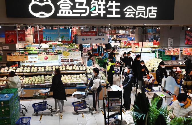1月15日,西安市曲江新区的居民在一家大型超市排队选购商品。新华社记者 陶明 摄