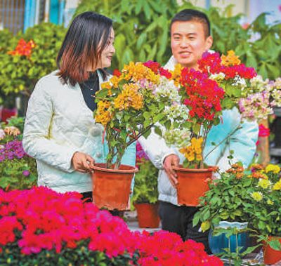 1月15日,在甘肃酒泉花卉市场,鲜花销售火爆。
