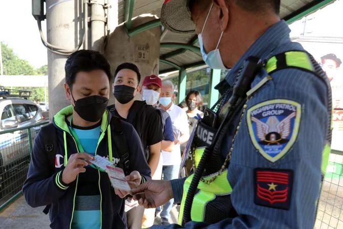 鉴于严峻的疫情形势,17日,菲律宾政府正式开始在首都大马尼拉地区实施一项新的防疫措施,即禁止未接种疫苗人士乘坐公共交通工具。在首都地区各主要车站及进出城卡口,警方部署了警力,检查乘客的疫苗接种证明。(总台记者 陶家乐)