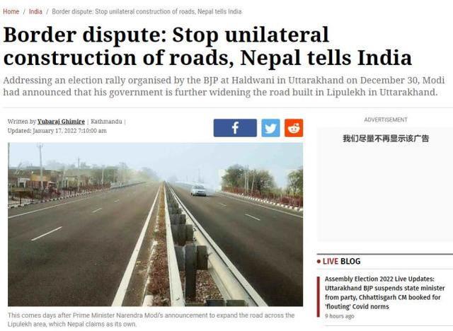 2021年12月30日,在印度人民党在北阿坎德邦举行的选举集会上,印度总理莫迪宣布,要扩建一条道路,穿越印度占领的里普列克山口地区。而尼泊尔主张拥有这一地区的主权。