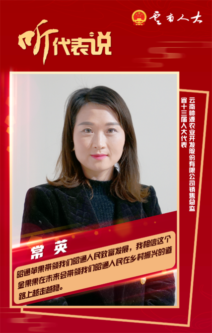 本次人代会我带来了我们家乡的昭通苹果,我们的昭通苹果已经享誉世界,昭通苹果带领我们昭通人民致富发展,我相信这个“金果果”在未来将会带领我们昭通人民,在乡村振兴的道路上越走越稳。