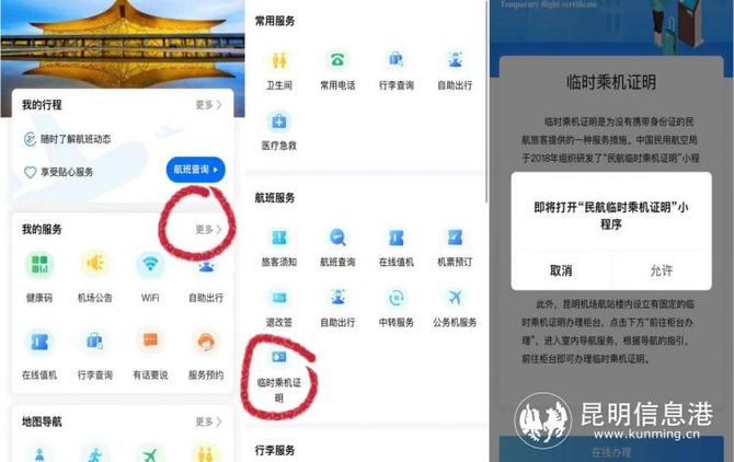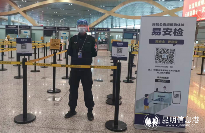 昆明机场安检设置了“易安检”专用通道,乘机旅客出行前48小时内可以通过支付宝扫码或者在支付宝中搜索“易安检”,进入小程序后填写个人相关信息,并正确回答简单的乘机安全知识,完成预约后就能使用“易安检”专用通道,快速通过安检。