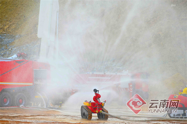 14时30分,实战演练开始。按照演练预案,总队、支队两级灭火救援指挥部在接到报警后按照“分级调度、跨区增援、科学处置、安全高效”的原则调派昆明、曲靖支队的化工灭火救援编队前往处置。