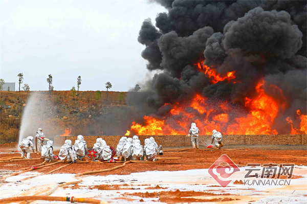 为做好重特大化工灾害事故的应急救援准备工作,进一步锤炼消防救援队伍处置化工类火灾的指挥水平和实战能力,1月17日,云南省消防救援总队组织昆明、曲靖、楚雄、玉溪、红河、大理支队6支重型化工灭火救援编队及地方应急、公安、交警、医疗、供电、环保、通信等应急联动单位,通过“实地作战演练+远程视频参演”的形式在曲靖市马龙区虹桥工业园区开展化工灾害灭火救援作战效能测试暨实战演练。