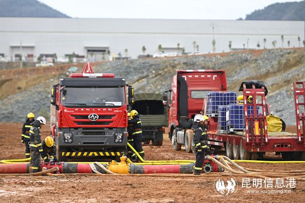 昆明信息港讯 记者劳学丽 通讯员张锦益 郭永峰 为做好重特大化工灾害事故的应急救援准备工作,进一步锤炼消防救援队伍处置化工类火灾的指挥水平和实战能力,1月17日,云南省消防救援总队组织昆明、曲靖、楚雄、玉溪、红河、大理支队6支重型化工灭火救援编队及地方应急、公安、交警、医疗、供电、环保、通信等应急联动单位,通过“实地作战演练+远程视频参演”的形式在曲靖市马龙区虹桥工业园区开展化工灾害灭火救援作战效能测试暨实战演练。