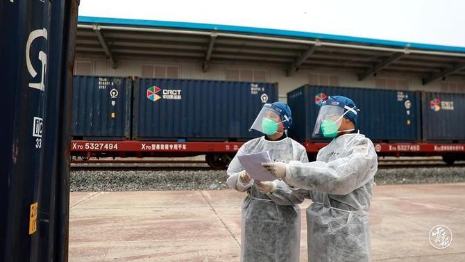 昆明海关所属勐腊海关关员对中老铁路国际货物列车集装箱核对封志 昆明海关供图