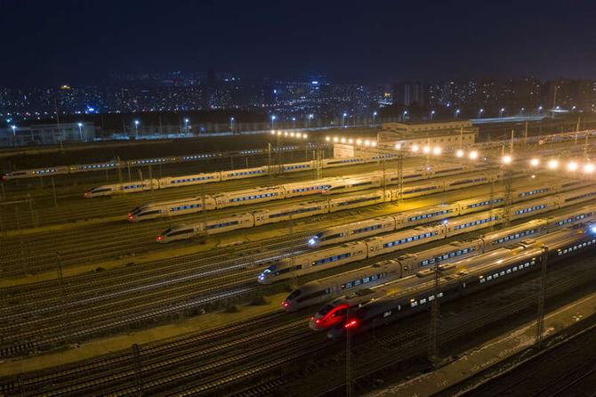 1月16日深夜,兰州车辆段兰西动车所综合楼内灯光闪亮。