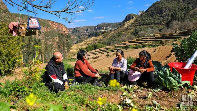 △2021年2月,云南曲靖,陆良县纪委干部走进田间地头,了解惠民政策落实情况。(图/视觉中国)
