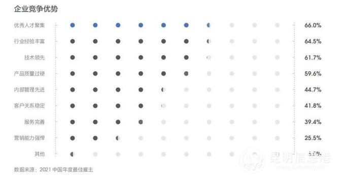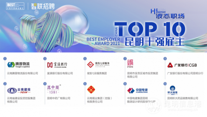 2021年中国年度最佳雇主于去年8月2日启动报名,8月31日结束。经过资格筛查,适格报名企业数量为848家。主办方邀请报名企业的前/现雇员、潜在雇员,对企业在雇主品牌六大维度(雇主文化、雇主形象、薪酬福利、组织管理、成长发展、工作环境)的表现进行评价,并根据雇员评价得分占比60%,专家评分占比40%的规则,产生年度昆明最佳雇主10强榜单。