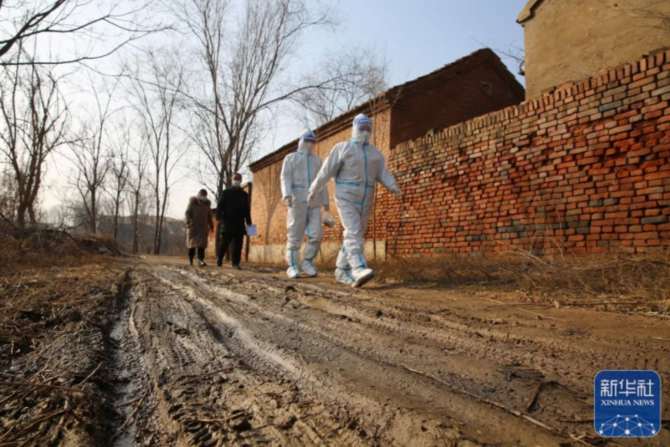 1月15日,范县辛庄镇高庄村医务人员入户进行核酸采样。(付邦钦 摄)