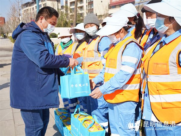 “考虑到熬制现成的姜茶发放到工作岗位,不能惠及到每一位环卫工人,毕竟每个人的作业时间和路段不同,而且发放过程中姜茶也容易凉。所以综合考虑,我们购买了速溶类型的姜茶,大家就可以用之前公司统一配发的保温杯,随时随地喝上暖呼呼的姜茶了。同时,公司还配备了几盒糕点,让大家暖胃也暖心。”云南京环盘宸公司常务副总经理、工会主席张凌云说道。“此外,‘冬送温暖,夏送清凉’已经是公司的惯例了,在每年最冷和最热的两个时间节点,一线职工都能感受到来自‘娘家人’的温暖。关心环卫职工不是一句说说而已,我们要扎扎实实把关爱落到实处。”张凌云补充说。