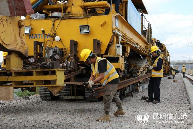 面对铺轨作业标准高、工期紧、连续长大坡道运输给铺轨施工带来的巨大挑战,滇南建设指挥部组织中铁三局等施工单位强化标准化管理,创新施工工艺,改造机械设备,采用机械化、自动化铺轨机组和施工信息化等手段,大幅提高了轨道精度和安全保障。