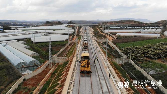 昆明信息港讯 记者上官艳君 1月20日9时许,在云南红河高铁站内,新型长轨牵引车将最后一组500米长钢轨精准推送到位标志着我国首条民族自治州内城际高铁——弥(勒)蒙(自)高铁全线铺轨完成,转入联调联试阶段,向着年内开通运营目标迈出了重要一步。