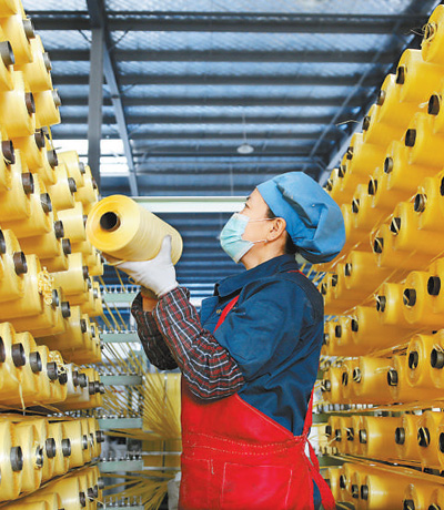 江苏省连云港市依托地方特色产业,建设了一批收入有保障的车间。图为脱贫户在车间工作。