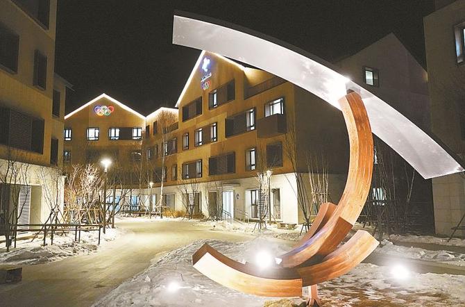 张家口冬奥村夜景。