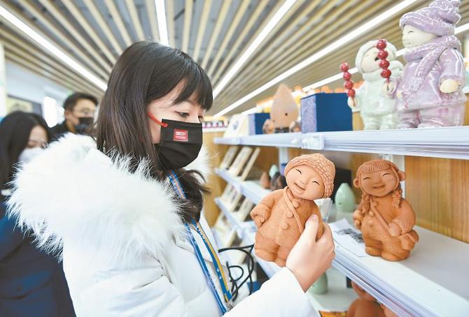 冬奥村便利商店内的河北特色泥塑。