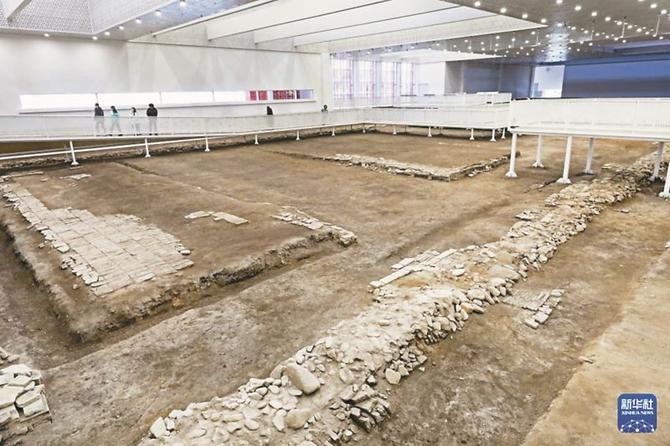观众在太子城遗址陈列馆参观。